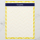 Pineapple Yellow and Light Yellow Large Chevron Zig Zag Pattern,Navy Blue Ribbon Name Monogram Label