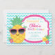 Party like a pineapple with this adorable birthday invitation! Features a cute pineapple chilling with palm tree sunglasses, accented with colourful stars. Hot pink frame and a blue chevron pattern make up the background.