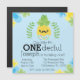 He's oh sweet and fun, your little guy is turning one! Celebrate his first onderful birthday with this sweet pineapple themed invitation. Features a light blue background with a pineapple with a moustache.