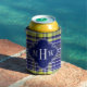 Pineapple Navy Blue White Preppy Madras Monogram Can Cooler