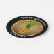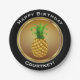 Pineapple on Faux Gold Happy Birthday with Name Paper Plate