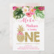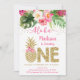 Pineapple Pink Gold Floral First Birthday Invitation
