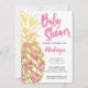 Pineapple Pink Tropical Flowers Girl Baby Shower Invitation