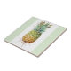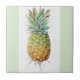 Botanical watercolor pineapple trimmed with sage green with sandstone texture print on ceramic tile.