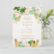 Aloha! Come away to paradise for this tropical engagement shower or couples shower invitation with pink and coral tropical flowers, gold pineapples and foliage. Rattan back page
