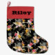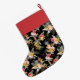 Pineapple Tropical Floral on Black Large Christmas Stocking