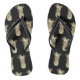 Walk in style with these chic flip flops. This design features pale gold pineapples on a black background. Designed by artist ©Susan Coffey.