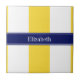Pineapple White XL Stripes, Navy 5c Name Monogram Ceramic Tile