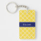 Pineapple Wht Fancy Quatrefoil Navy Name Monogram Key Ring