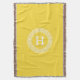 Pineapple Wht Greek Key Rnd Frame Initial Monogram Throw Blanket