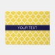 Pineapple Yellow and White Moroccan Quatrefoil Trellis Pattern #5, Navy Blue Ribbon Name Monogram Label