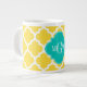 Pineapple Wht Moroccan #5 Teal 3 Initial Monogram Large Coffee Mug