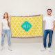 Pineapple Wht Moroccan #5 Teal 3 Initial Monogram Throw Blanket