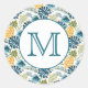 Pineapples blue palm leaves foliage white monogram classic round sticker
