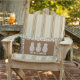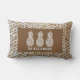 Three pineapples accent this outdoor lumbar pillow, great for your home or a gift for a new homeowner personalised with your family name on a woven wood print pattern. (Not actual wood, it is an illustration printed in full colour.)
