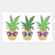Perfect for summertime, this sticker features colourful graphic artwork of pineapples wearing retro sunglasses with the sun reflected in their purple lenses.