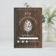 A rustic and elegant wedding r.s.v.p. invitation featuring an illustration of a white pine cone over a barn wood inspired background.