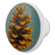 Features a pinecone design in rich, warm brown hues. Rustic, natural beauty. Perfect for the fall or winter season.