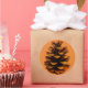 Features a pinecone design in rich, warm brown hues. Rustic, natural beauty. Perfect for the fall or winter season.