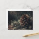 This postcard features a pinecone nestled among frosted pine sprigs, snowflakes, and scattered winter forest textures. The softly lit background evokes a magical, snow-dusted scene perfect for capturing the warmth of winter and the beauty of nature.