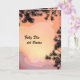 This Día del Padre card is decorated with an abstract design of pine branches silhouetted against a brilliant sunset sky of orange, pink, yellow and mauve. The design is repeated inside. All text can be customised to suit your needs.