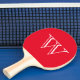 Ping pong paddle shown in red with a monogram letter.