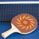 Pinwheel in yellow and red, centred on a brick-red background. Change look by altering background colour.