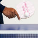 NewParkLane - Cute Ping Pong Paddle, with a blush pink and white striped pattern, and fun quote 'Ping Pong Queen' in fun, hot pink typography .
