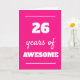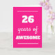 Modern pink 26 years of awesome birthday card for her 26th birthday, which you can easily personalise the inside card message if wanted.