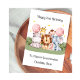 This girl watercolour 2nd birthday card is suitable for twins or a single child. The design includes stars, a birthday number 2 in pink, two balloons, and five safari animals (hippo, giraffe, lion, monkey and elephant). The child's name has been included on the front of the card.