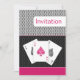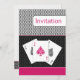 mod pink Vegas wedding invites featuring 3 aces, with a touch of damask. Matching products also available