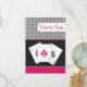 mod pink Vegas wedding thank you cards featuring 3 aces, with a touch of damask. Matching products also available
