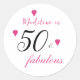 Pink 50 fabulous hearts typography 50th birthday classic round sticker