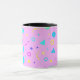 This ceramic mug features a playful neon Memphis geometric retro pattern on a vibrant pink background. With its colorful 80s-inspired shapes, it’s perfect for adding a fun and stylish touch to your morning coffee or tea time.