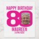 80th birthday hot pink and white photo party paper beer or wine labels. Great to add a personal touch to a surprise eightieth birthday party. Customise with your birthday girl's photo in the 0 of 80 and personalise with your choice of name and birthday celebration date. Designed by Sarah Trett for www.mylittleeden.com