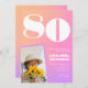 Pink 80th birthday invitations for her Retro Photo gradient
