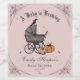 An elegant blush pink "A Baby is Brewing" Fall baby shower design hand-drawn in black ink by Nathalie Portet. Features an antique Victorian baby carriage, black crow, pumpkins and spiderwebs on an elegant blush pink background. Name, Event and Event Date are editable.