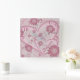 Pink Abstract Hearts & Flowers Love Fractal Art Square Wall Clock