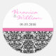 A black-and-white damask wallpaper pattern along with a pink rule accent this sticker. Easily personalise it with your name(s), event date or substitute any information. Available in alternate colours with matching products.