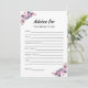 Vino Before Vows Bridal Shower Theme - Watercolor Pink Purple Floral "Advice for the Bride" Bridal Shower Game Cards.