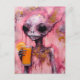A pink alien enjoys a nice glass of orange juice mixed media ai generated painting