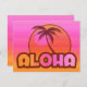 Hawaiian design featuring a palm tree and sunset in shades of pink and orange. Retro style text says ALOHA. Pink and orange gradient background. Customise it with your own personal text. Keep that vacation feeling all year long. PinkInkArt original!