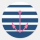 Pink anchor stickers with blue and white stripes. Cute maritime envelope sealers / labels for nautical wedding or baby shower invitations. Personalizable with monogram name initials.