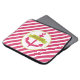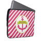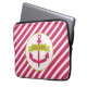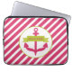 An electronics bag featuring an illustration of a pink anchor covered by a green banner. Personalise with your name in pink on banner. Anchor is inside circle outlined in green. Background is hot pink diagonal stripes.