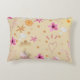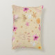 Custom-designed throw pillow with pink and beige colours and whimsical flowers, hearts and stars design. Perfect accent pillow. Made in the U.S.A.