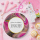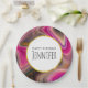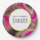 Pink and Black Abstract with Gold Swirls Birthday Paper Plate