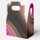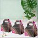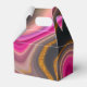 Small favour box with a groovy looking abstract design. Pink and black colours mix and mingle together in a swirling motion. Sprinkles of faux gold glitter in between the layers.