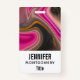 A name tag with a groovy looking abstract design. Pink and black colours mix and mingle together in a swirling motion. Sprinkles of faux gold glitter in between the layers.