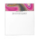 A notepad with a groovy looking abstract design. Pink and black colours mix and mingle together in a swirling motion. Sprinkles of faux gold glitter in between the layers.