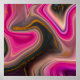 A poster with a groovy looking abstract design. Pink and black colours mix and mingle together in a swirling motion. Sprinkles of faux gold glitter in between the layers.